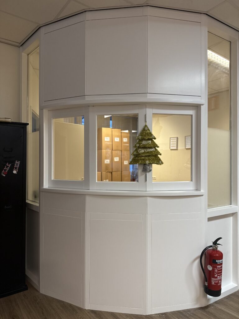 Voor Fonteynenburg hebben wij recent een compleet renovatieproject afgerond, waarbij functionaliteit en uitstraling centraal stonden. De balie en het nachtdiensthokje zijn volledig vernieuwd en uitgevoerd met stevig hang- en sluitwerk en gelaagd glas. Alles is nauwkeurig ingemeten en op maat gemaakt in onze eigen machinale werkplaats, waarna het geheel strak is afgewerkt met schilderwerk.