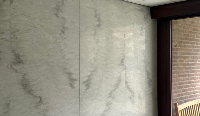 Bijzondere aandacht ging uit naar het herstel van bestaande materialen. De marmeren wanden en de leistenen vloer zijn zorgvuldig in de oude staat hersteld, zodat ze weer aansluiten bij het oorspronkelijke ontwerp van het gebouw. Daarnaast is het schilderwerk van deuren en kozijnen vernieuwd.