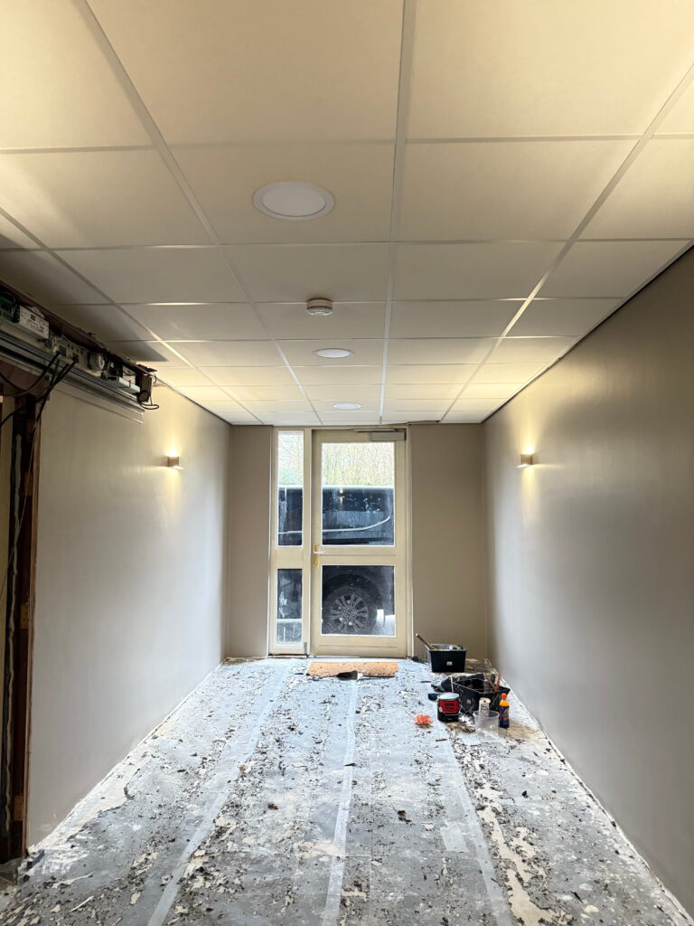 Tijdens dit project hebben wij nieuwe plafonds gerealiseerd en bestaande systeemplafonds vervangen. Ook is de liftombouw uitgevoerd en is het plafond geïsoleerd. In combinatie met een nieuw lichtplan zorgt dit voor meer comfort en een rustigere uitstraling bij binnenkomst.